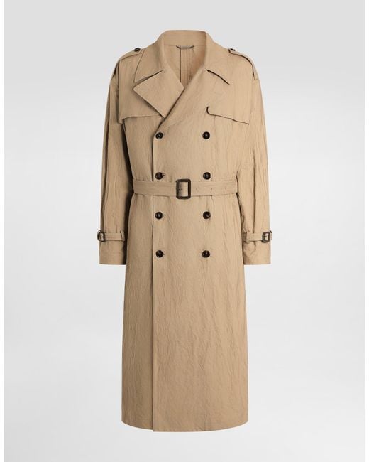 Crinkled Effect Cotton Trench Coat de hombre de color neutro