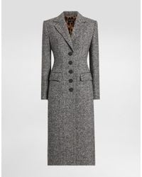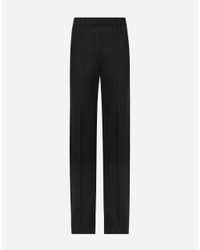 Dolce & Gabbana Pantalón De Lana Elástica En Chevrón de mujer de color gris