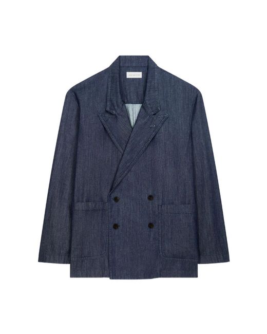 Eleva tu estilo con este blazer cruzado azul índigo de Dries Van Noten, que presenta cierre de botones, un bolsillo ribeteado en el pecho, dos bolsillos de parche delanteros y mangas largas. Esta chaqueta es un imprescindible para el guardarropa moderno. Características clave: Azul | Cruzado | Bolsillo ribeteado en el pecho | Dos bolsillos de parche delanteros | Mangas largas |