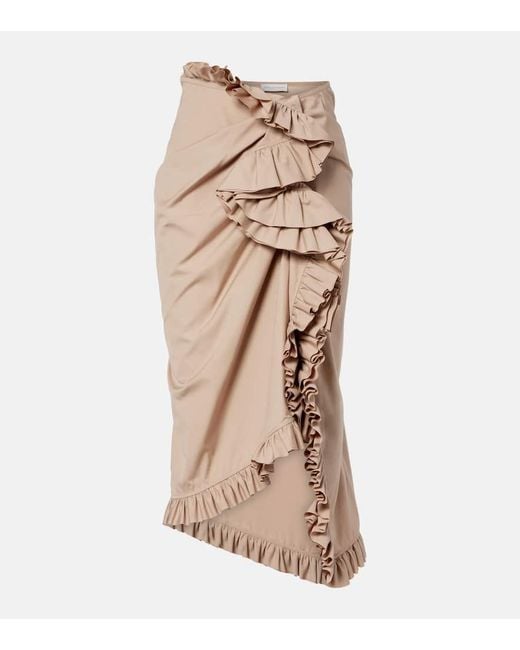 Falda Midi Drapeada Con Volantes de mujer de color neutro