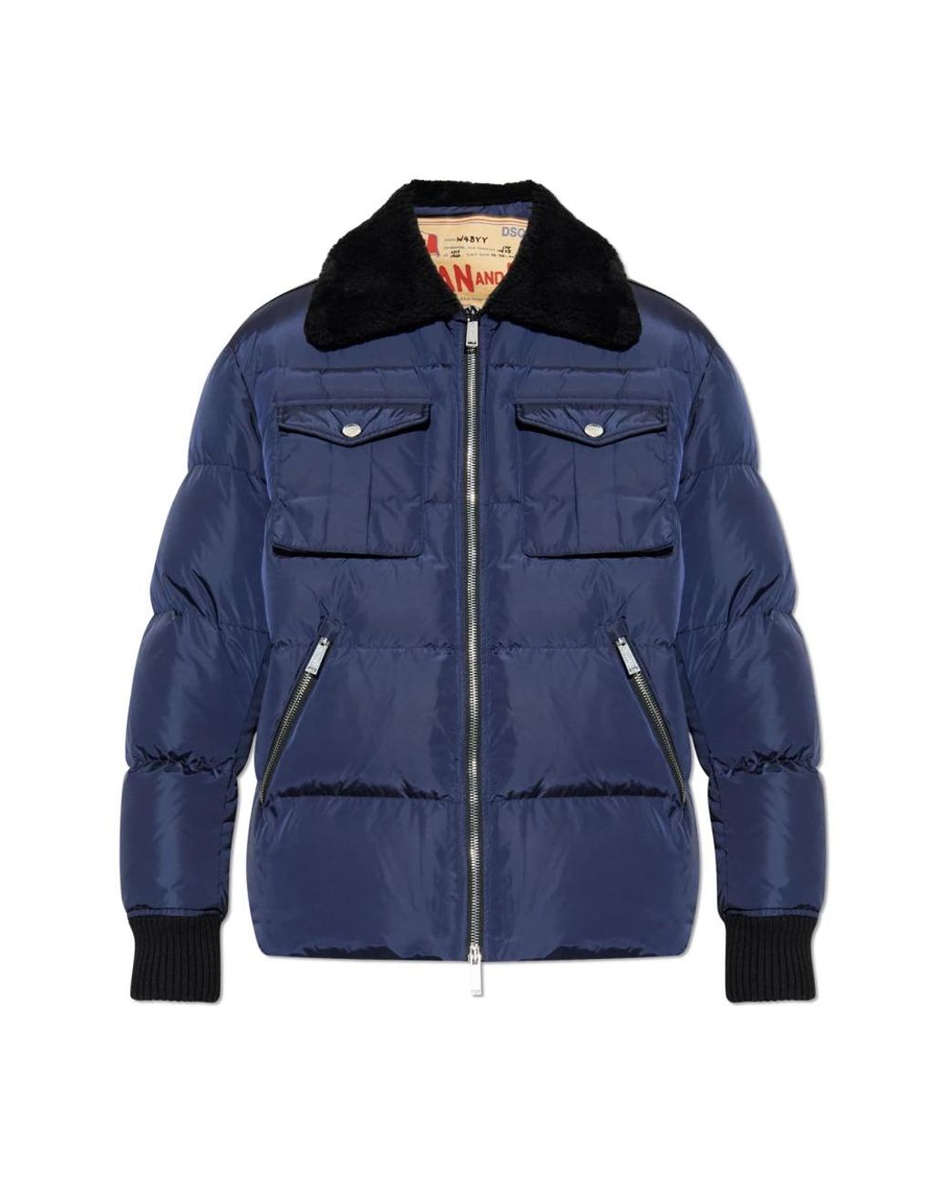 ¡Aprovecha las mejores rebajas! Chaqueta DE Plumas CON Cuello DE Piel es la quintaesencia del estilo refinado con un carácter masculino sutil. Terminada en un profundo tono de azul marino, impresiona con un corte clásico de bombardero y un ajuste regular y relajado que garantiza la máxima comodidad, incluso en los días más fríos. La capa exterior hecha de poliamida brillante completa el aspecto, creando una impresión de lujo discreto, enfatizado aún más por un relleno de plumón suave y cuidadosamente seleccionado. El punto culminante de esta pieza es un cuello negro extragrande hecho de piel sintética, un detalle espectacular que hace de esta chaqueta un artículo único en la colección. La practicidad se ve mejorada por cuatro bolsillos: dos rectangulares en el pecho y dos bolsillos inclinados y cerrables a la altura de la cadera. POR QUÉ Comprar Este Producto? * Combinación excepcional de elegancia y funcionalidad * Materiales cuidadosamente seleccionados que garantizan el confort térmico * Cuello de piel sintética contrastante único * Detalles que enfatizan el carácter exclusivo del diseño de Dsquared2 * Construcción pensada y bolsillos espaciosos y convenientes Medidas del modelo Altura: 185 cm Pecho: 92 cm Cintura: 74 cm Caderas: 91 cm El modelo lleva la talla: 50 Color: azul