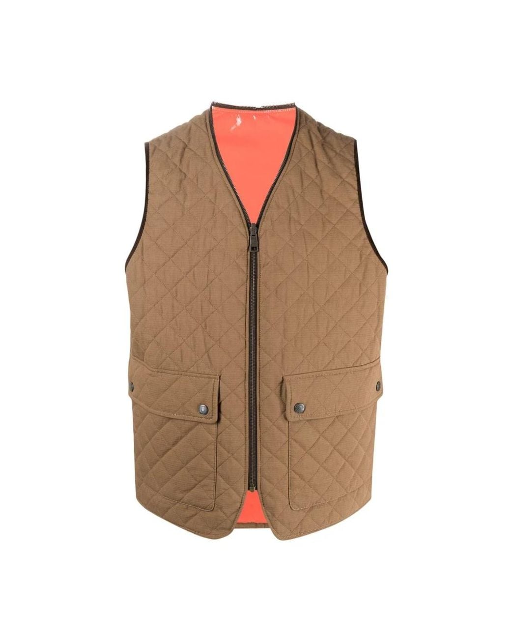 ¡Aprovecha las mejores rebajas! Presentamos el chaleco acolchado reversible de Dsquared2 en marrón y naranja. Esta pieza versátil cuenta con cierre de cremallera y el icónico logo de Dsquared2, ofreciendo estilo y comodidad. Características clave: Marrón | Naranja | Poliéster | Algodón | Reversible | Cierre de cremallera | Icónico logo de Dsquared2 | Composición y cuidado: 100% Poliéster | 100% Algodón Color: marrón