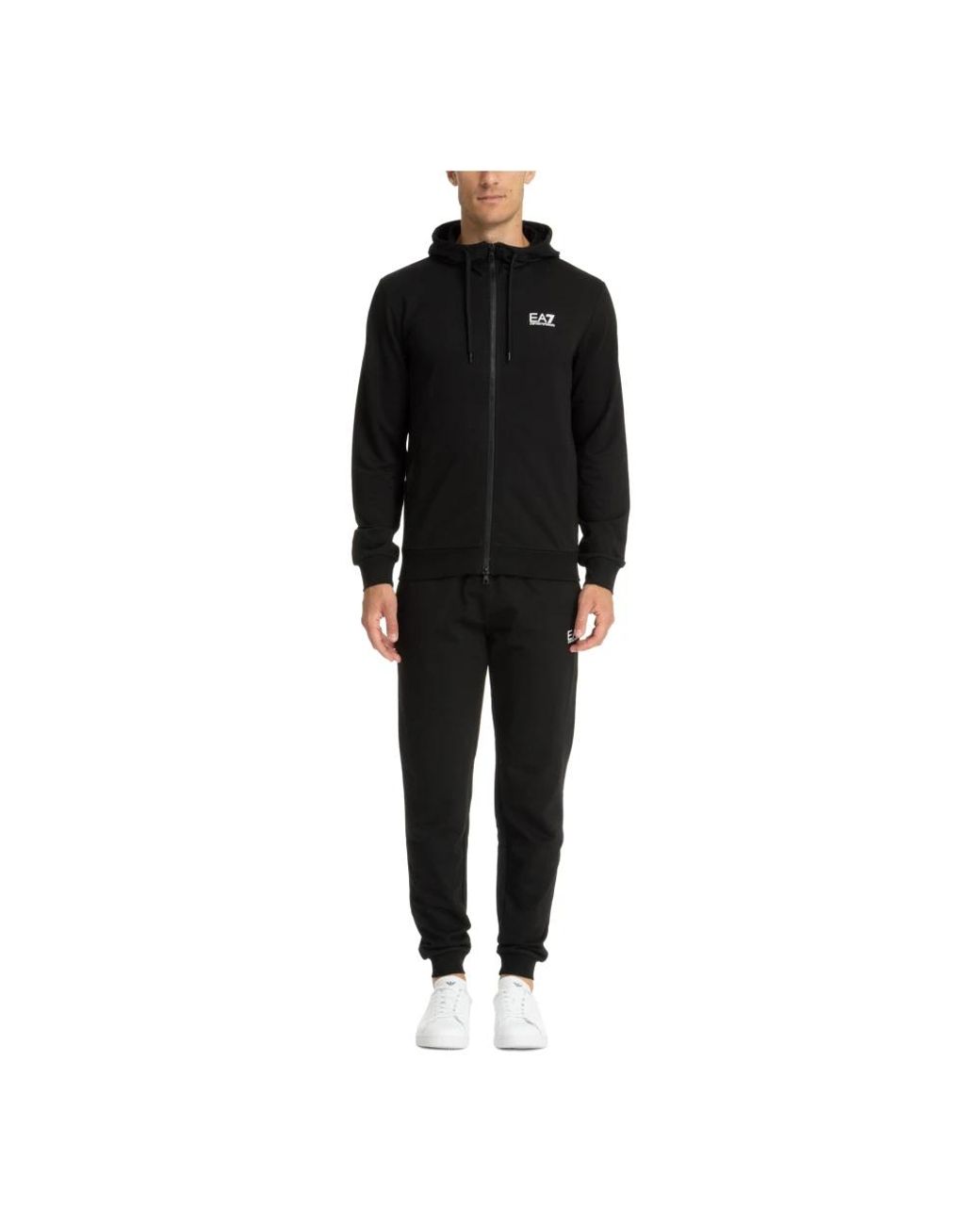 Mejora tu vestuario de entrenamiento con el Conjunto de Chándal Negro de Algodón EA7 de Emporio Armani, diseñado para ofrecer comodidad y estilo durante tus sesiones de entrenamiento. Este conjunto incluye una sudadera con capucha, cordón ajustable y cierre de cremallera, complementada con pantalones de chándal con cintura elástica. Características clave: Negro | Algodón | Cierre con cordón | Cierre con cremallera | Cintura elástica | Sudadera con capucha | Dobladillos acanalados | Bolsillos laterales de ojal | Logotipo en el pecho y la pierna | Logotipo a rayas en la espalda | Dimensiones y ajuste: Corte regular | Composición y cuidado: 100% Algodón | Lavar a máquina con agua fría, secar en secadora a baja temperatura