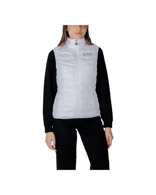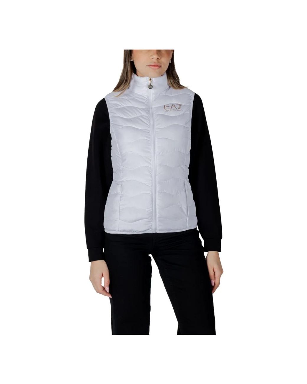 ¡Aprovecha las mejores rebajas! Mantente elegante y cálida con esta Chaqueta sin mangas con cuello alto y cierre de cremallera de Emporio Armani Ea7. Su elegante diseño blanco y su patrón liso la convierten en una prenda atemporal que se puede combinar fácilmente con diferentes conjuntos. Diseñada para mujeres, esta chaqueta cuenta con un práctico cierre de cremallera y un sofisticado cuello alto. Fabricada en un 100% de poliéster, es ligera, duradera y perfecta para superponer sobre camisetas de manga larga o jerséis. Fácil de cuidar, lavable a máquina a 30°.