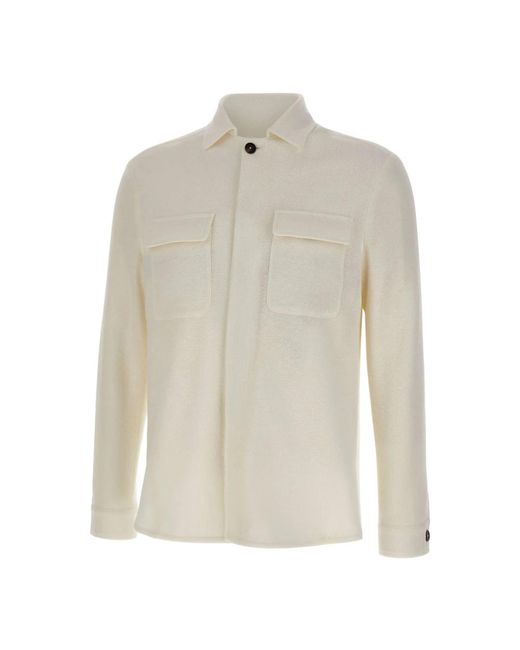 ¡Aprovecha las mejores rebajas! La chaqueta de lino y algodón Eleventy combina una textura de microcanalé con una silueta de camisa para crear capas suaves y ligeras. El diseño enfatiza las líneas limpias y los detalles prácticos para un uso diario versátil. Atributos clave: Blanco | Lino y algodón | Ligera | Tapeta oculta | Botones marrones de la marca | Dos bolsillos de parche en el pecho con cierres de botón ocultos | Puños ajustables con botón | Textura de microcanalé | Silueta de camisa | Tacto suave | Dimensiones y ajuste: Corte regular | Composición y cuidado: Lino | Algodón Color: blanco