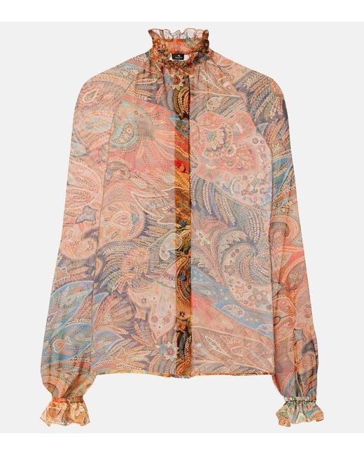 Camisa De Seda Estampada Con Volantes de mujer de color rosa