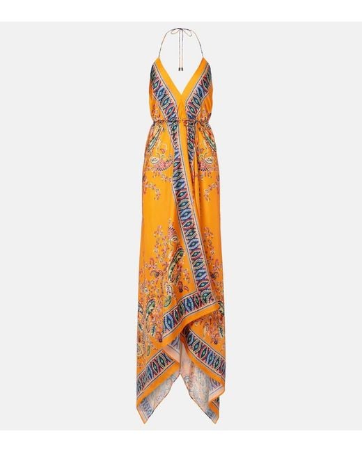 Vestido Largo Asimetrico Con Espalda Abierta de mujer de color naranja