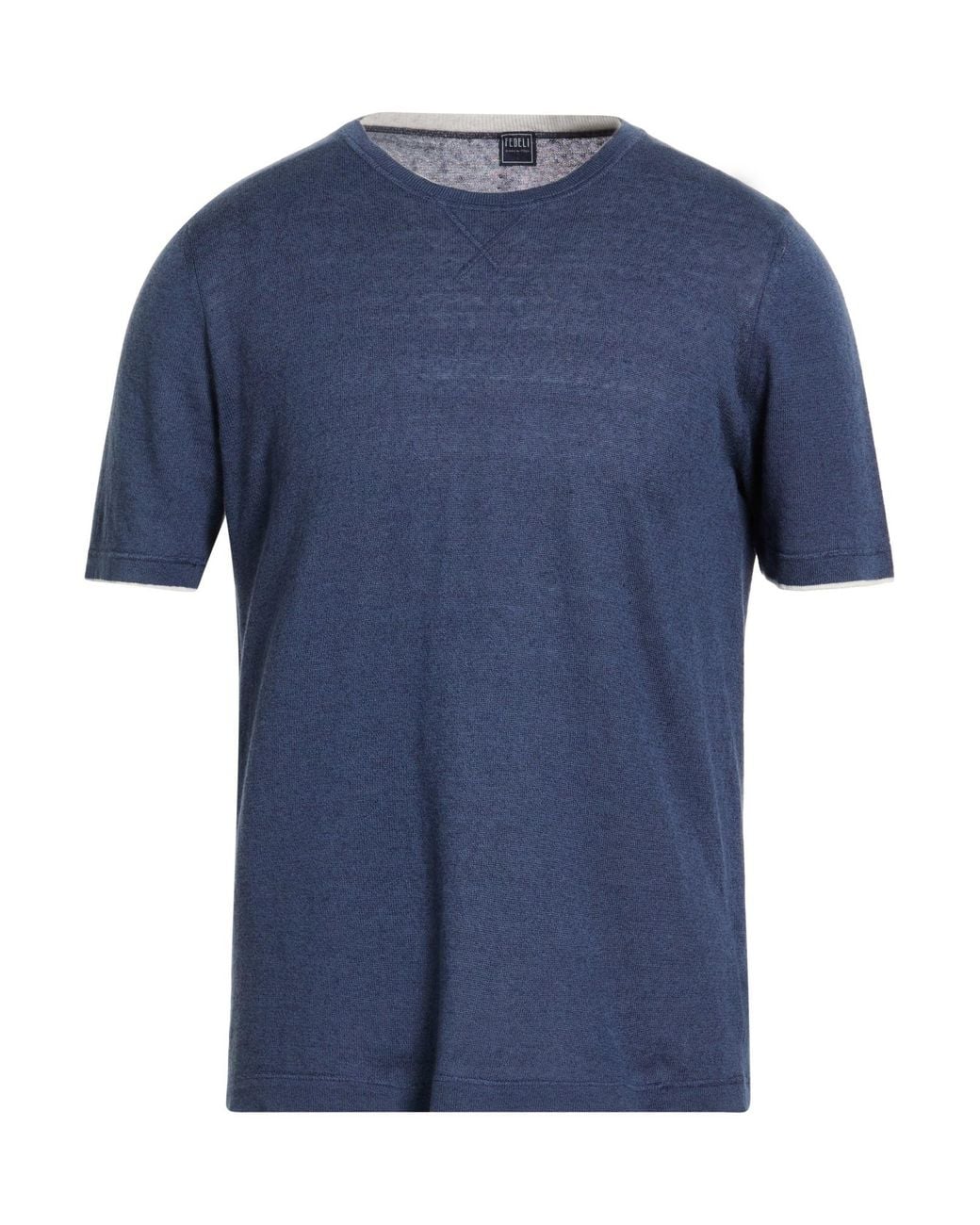 FEDELI. tejido en punto, punto ligero, modelo ribeteado, monocolor, cuello redondo, manga corta, lavado a máquina o limpieza en seco, no lavar con lejía , no secar en secadora, esta marca talla grande. 70% Lino, 30% Algodón. Color: azul