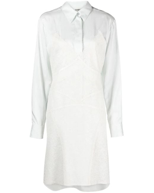 Vestido camisero con detalle de encaje de mujer de color blanco