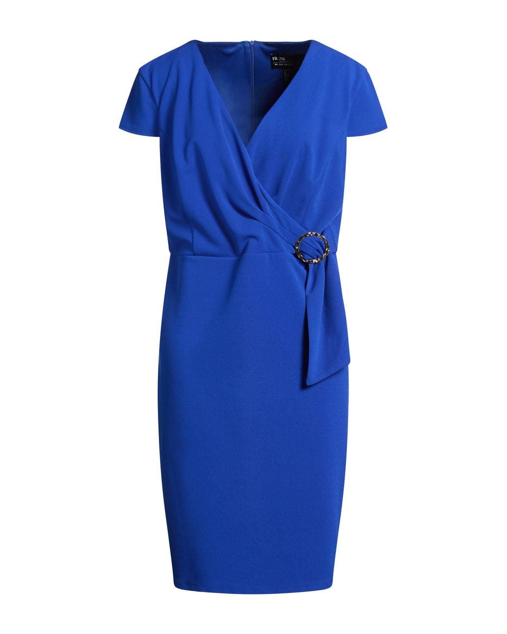 FRANK LYMAN. vestido ajustado, punto jersey, tejido elástico, liso con aplicaciones, hebilla, efecto cruzado, escote en v, manga corta, interior parcialmente forrado, cierre con cremallera, abertura en la parte posterior , lavar a mano, no lavar con lejía , no secar en secadora, un dress-code elegante, perfecto para damas de honor, invitadas de boda o cualquier ocasión especial. 95% Poliéster, 5% Elastán. Color: azul