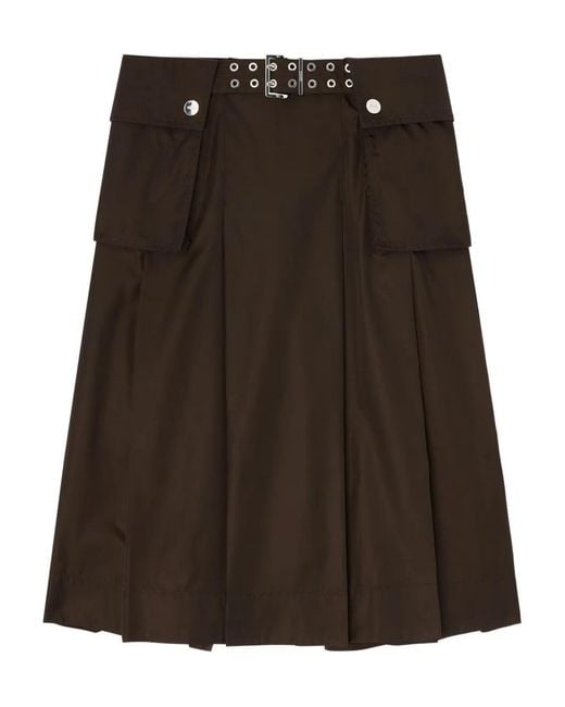 Falda midi con cinturón y bolsillo de mujer de color marrón