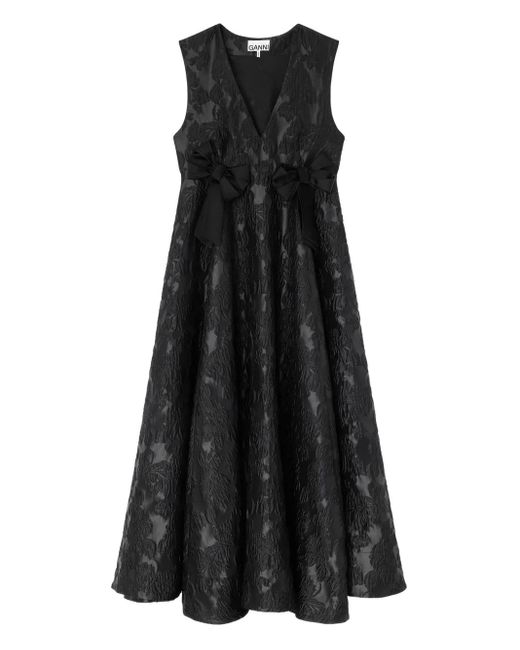 Vestido midi con motivo floral y lazo de mujer de color negro