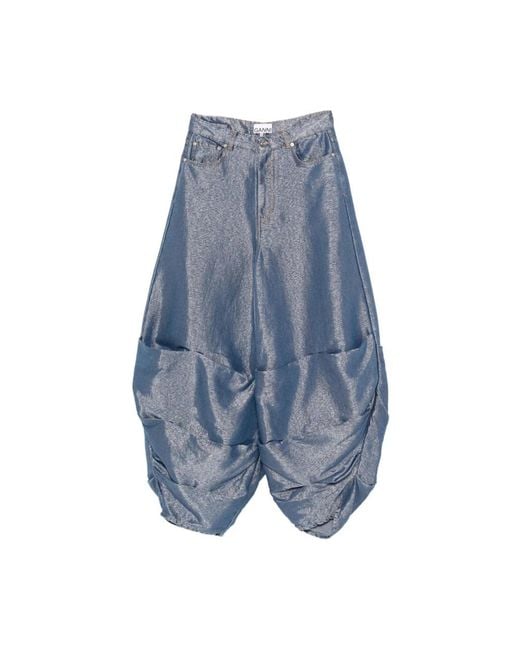 ¡Aprovecha las mejores rebajas! Los pantalones anchos Ganni presentan detalles fruncidos y confección de cinco bolsillos para una silueta relajada y contemporánea adecuada para el uso diario. Atributos clave: Azul | Cinco bolsillos | Presillas para cinturón | Detalle fruncido | Silueta de pierna ancha | Dimensiones y ajuste: Corte ancho Color: azul