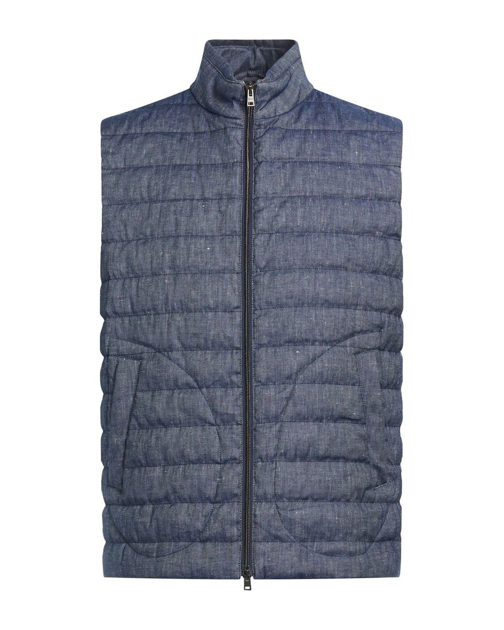 HERNO. tejido, reversible, monocolor, logotipo de la marca, sin mangas , interior en pluma de oca, acolchado ligero, cierre con cremallera, bolsillos de ojal, composición con partes de origen animal pero no textil, limpiar en seco, no lavar con lejía , no secar en secadora. 59% Lino, 40% Algodón, 1% Elastán. Color: azul