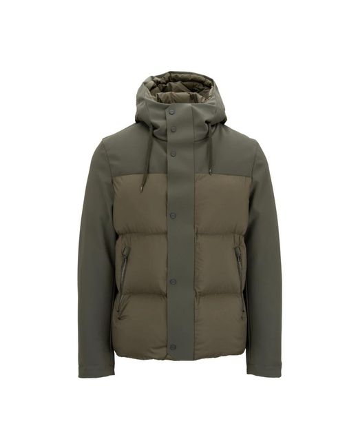 ¡Aprovecha las mejores rebajas! Mantente abrigado y con estilo con esta chaqueta de plumas para hombre de Herno. Fabricada con materiales de alta calidad, esta chaqueta cuenta con cuello alto, capucha, cordón ajustable, accesorios con logotipo y bolsillos laterales con cierre de cremallera. Perfecta para los días fríos, se abrocha con botones a presión y cremallera de doble cursor. Disponible en diferentes tallas. Color: verde