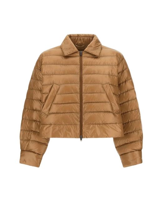 La chaqueta de plumas corta Luxe de Herno combina la artesanía italiana con un refinado acabado acolchado y un cuello estructurado, ofreciendo una calidez ligera de plumón para el uso urbano diario y para combinar con otras capas en la montaña. Atributos clave: Beige | Beige claro | Plumón | Aislamiento ligero | Calidez sin volumen | Fácil de combinar con otras capas | Versátil para uso urbano y alpino | Refinado efecto acolchado | Cuello estructurado | Silueta corta Color: marrón