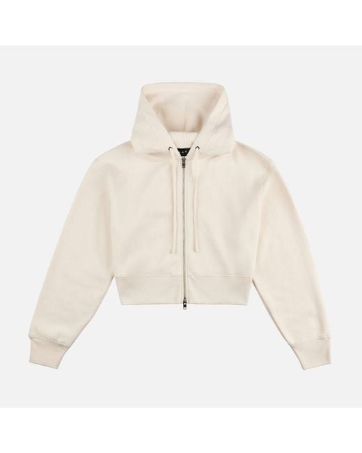 Sudadera cropped con capucha regulable con jareta, realizada en algodón y cashmere. Presenta un corte regular y bordes en punto acanalado, se caracteriza por un cierre con cremallera y doble cursor. Color: neutro
