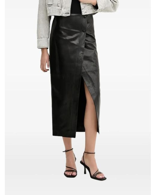 Falda midi con abertura - Negro
