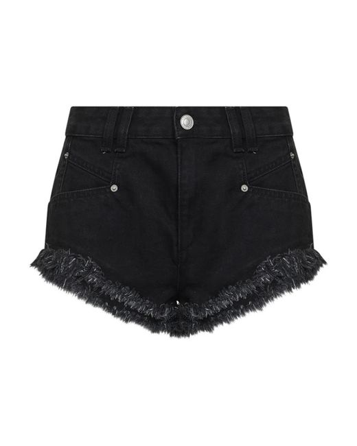 ¡Aprovecha las mejores rebajas! Pantalones cortos de mezclilla Isabel Marant en un lavado negro descolorido, confeccionados en 100% algodón. Cuentan con una bragueta con cremallera y un botón metálico con el logotipo, y bordes deshilachados para un aspecto relajado y desgastado. Características principales: Negro | Negro descolorido | Algodón | Cierre de bragueta con cremallera y botón metálico con logotipo | Cintura con trabillas para cinturón | Bolsillos delanteros | Bolsillos de parche traseros | Bordes deshilachados | Parche de cuero con el logo 'Isabel Marant' grabado en la cinturilla trasera | Composición y cuidado: 100% Algodón | Lavar a máquina con agua fría, ciclo suave; secar al aire; planchar a baja temperatura. Color: negro