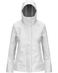 Visitar MiintoK-Way Madalina Bonded Jersey es una chaqueta de longitud media, resistente al agua, diseñada para el clima de transición. Combina una capa exterior de nailon de triple capa con un interior de jersey