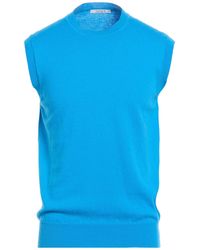 Visitar YOOXTejido en punto, efecto entreverado, sin aplicaciones, punto ligero, cuello redondo, monocolor, manga larga, sin bolsillo. 100% Lana Merina. Color: azul