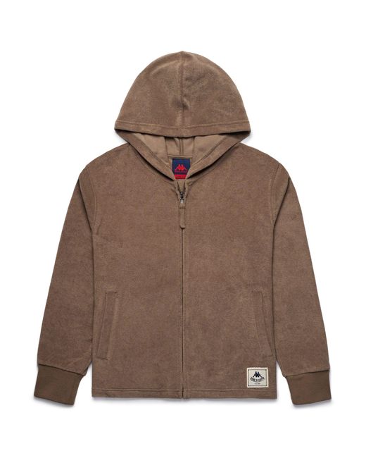 COLLECCIÓN. Sudadera de mujer en felpa de toalla. AJUSTE REGULAR. Capucha, manga larga con cremallera y bordes de canalé. Etiqueta jacquard aplicada con personalización de Robe di Kappa. Detalles del Producto Descripción Felpa, Chaqueta Género Mujer Estación Primavera, Verano Composición Total: 50% Algodón, 50% Poliéster Color: marrón