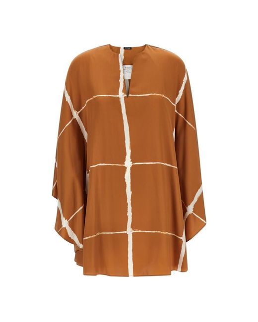 La blusa de satén de seda de Kiton presenta un satén con un estampado gráfico y una silueta de caftán para un look elegante y relajado. El cuello en V y las mangas cortas anchas la hacen adecuada para un estilo diurno o nocturno sin esfuerzo. Atributos clave: Marrón | Seda | Modelo caftán | Cuello en V | Mangas cortas anchas | Aberturas laterales | Dobladillo redondeado | Estampado gráfico | Dimensiones y ajuste: Corte extragrande Color: marrón