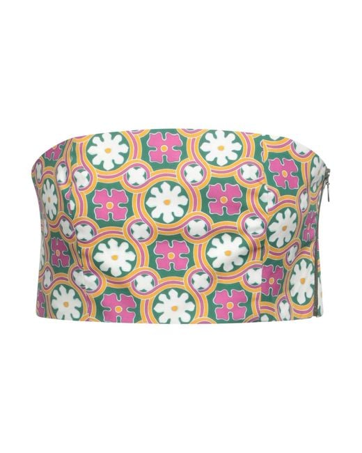 LE SARTE PETTEGOLE. top sin mangas, tejido, estampado floral, fruncido, hombros descubiertos, cierre con cremallera, lavado a máquina o limpieza en seco, no lavar con lejía , no secar en secadora. 100% Algodón.