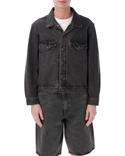 Confeccionado en puro algodón, este Levi's La chaqueta vaquera estilo camionero combina un diseño atemporal y proporciones relajadas para un estilo cotidiano sin esfuerzo. El cuello puntiagudo y los bolsillos con solapa en el pecho resaltan la marca. S herencia, lo que la convierte en una prenda versátil para cualquier vestuario informal. Mezclilla de algodón. Cuello puntiagudo. Cierre frontal con botones. Bolsillos de parche con solapa en el pecho. Bolsillos ribeteados laterales. Ajuste relajado. Andrea mide 1,90 m y usa talla L. Color: negro