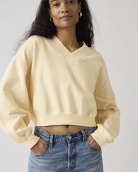 Visitar Levi'sCon una silueta retro, esta sudadera Vintage de cuello de pico es como un descubrimiento fácil en una tienda de segunda mano, La hemos confeccionado con un femenino cuello de pico, mangas tipo