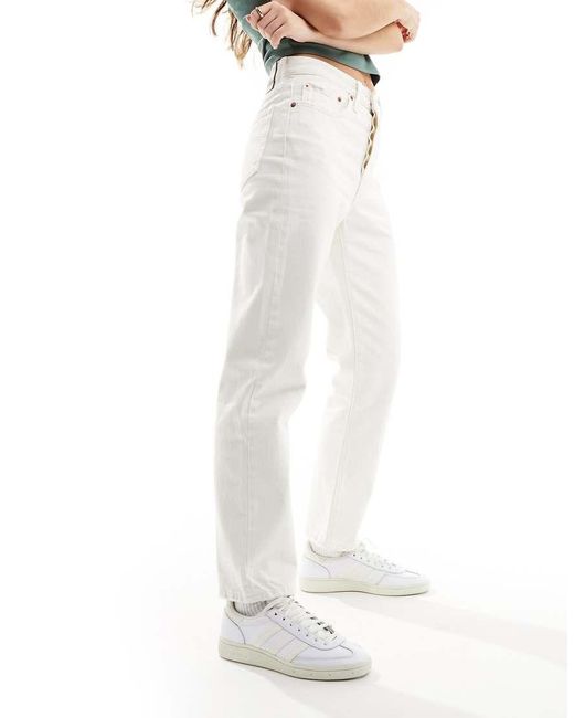 Vaqueros de Levi's Un clásico, pero tobillero Pernera recta de corte capri Entallado de las caderas al muslo Talle alto Trabillas para cinturón Bragueta con botones Cinco bolsillos Tiro de la entrepierna de 26" que llega hasta el tobillo Color: blanco