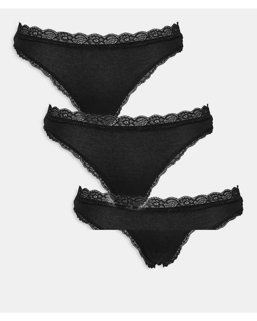 Lencería y moda noche de Lindex Pack de tres De talle bajo Cinturilla elástica Ribetes de encaje Diseño de estilo tanga Color: negro