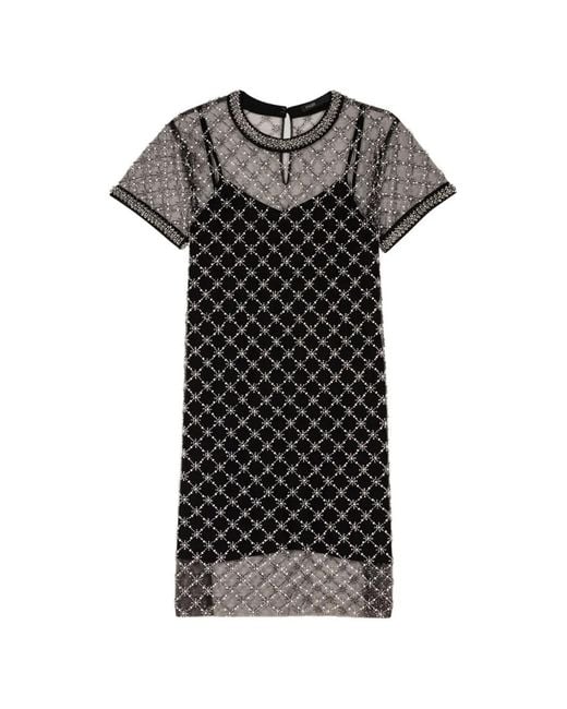 Vestido corto con apliques y manga corta de mujer de color negro