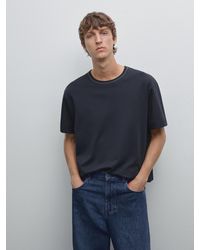 MASSIMO DUTTI Camiseta Manga Corta Detalle Costura Contraste de hombre de color azul
