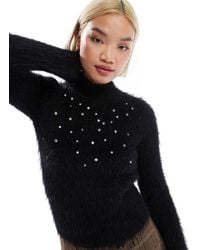 Miss Selfridge Jersey De Manga Larga Con Cuello Alzado Y Detalles Adornados De Punto Desflecado De -Blanco de mujer