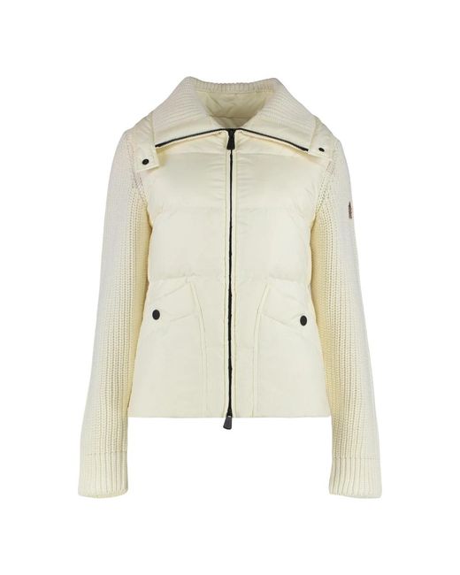 El cárdigan acolchado de lana con cremallera de Moncler combina una silueta entallada y elegante con un acolchado para una calidez ligera. Diseñado para usar en capas durante la temporada media, cuenta con un cuello alto y un cierre de doble cremallera para una cobertura ajustable. Atributos clave: Beige | Marfil | Lana virgen | Cierre frontal con doble cremallera | Bolsillos laterales con cremallera | Cuello alto | Detalles acolchados | Mangas largas con detalles refinados | Construcción ligera | Dimensiones y ajuste: Corte entallado | Composición y cuidado: 100% Poliamida | 100% Lana virgen | 100% Poliéster | Consulte las instrucciones del fabricante