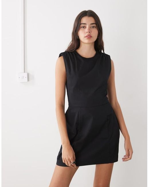 Vestidos de Monki Diseño sin mangas Detalle de hombreras Cuello redondeado Cierre con cremallera en la espalda Corte estándar Color: blanco