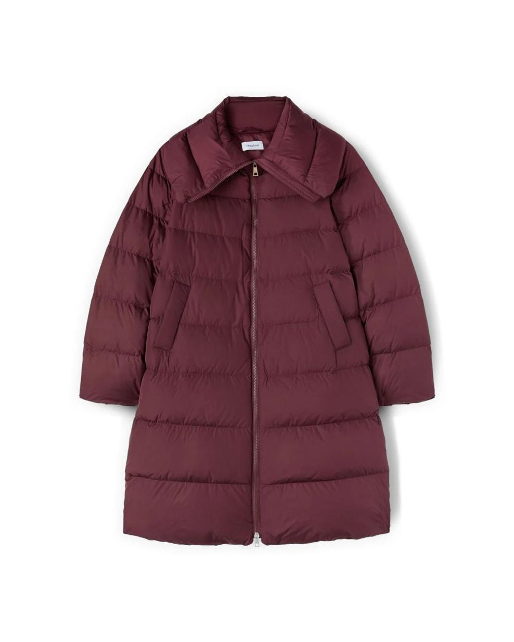 El abrigo largo de plumón con cuello ancho de Motivi es un abrigo envolvente y pesado diseñado para climas fríos. Su silueta tipo capullo y su cuello ancho combinan la comodidad con un distintivo detalle de cremallera asimétrica. Atributos clave: Rojo | Burdeos | Poliéster | Acolchado aislante de plumón | Peso pesado | Cierre frontal con cremallera | Bolsillos laterales | Mangas largas | Cuello ancho | Forma de capullo | Cremallera asimétrica | Dimensiones y ajuste: Altura de la modelo: 178 cm (talla 40) | Silueta tipo capullo | Composición y cuidado: Tejido principal: 100% poliéster | Forro principal: 100% nailon | Interior principal: 90% plumón, 10% pluma | Muy delicado - lavar a 40°; no secar en secadora; no usar lejía; no lavar en seco; no planchar Color: morado