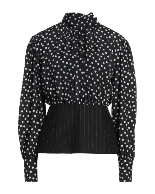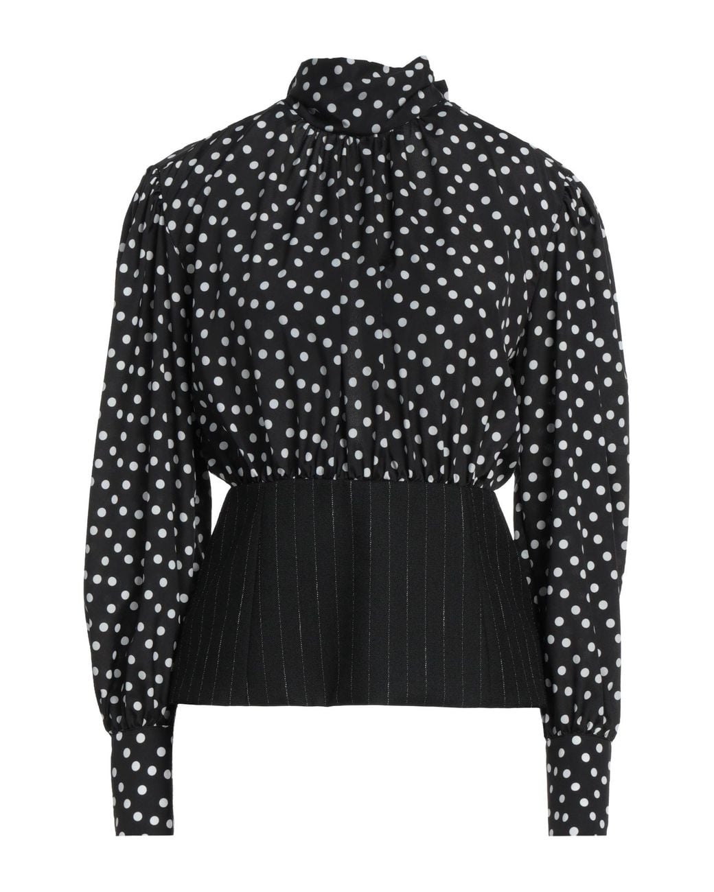 MSGM. raso, lana, logotipo de la marca, estampado de lunares, raya diplomática, cuello alto, manga larga, cierre con botones, cierre con nudo, sin bolsillos, top con peplo. 100% Poliéster, Lana.