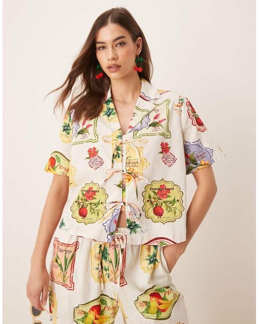 Camisa Con Estampado De Postales De Frutas Y Detalle De Lazada Harper De (Parte De Un Conjunto) de mujer de color neutro