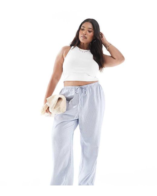 Pantalones y leggings de Only Curve Diseño a rayas Talle alto Cinturilla con cordón ajustable Pernera ancha Color: azul