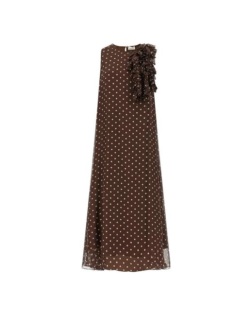 El Vestido Largo Pallina de P.a.r.o.s.h. es un maxi vestido en tejido soleil plisado semitransparente, diseñado con detalles de volantes plisados y una silueta acampanada para un look de día elevado. Atributos clave: Marrón | Tejido soleil plisado | Semitransparente | Cierre de botón en la espalda | Forro | Cuello redondo | Sin mangas | Inserto frontal con volantes plisados | Silueta acampanada | Detalle de lágrima calada en la espalda | Dimensiones y ajuste: Ajuste fiel a la talla Color: marrón