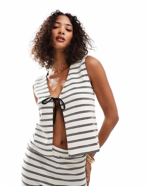 - Camiseta Sin Mangas A Rayas Monocromáticas Con Lazada Delantera De Croché De (Parte De Un Conjunto)
