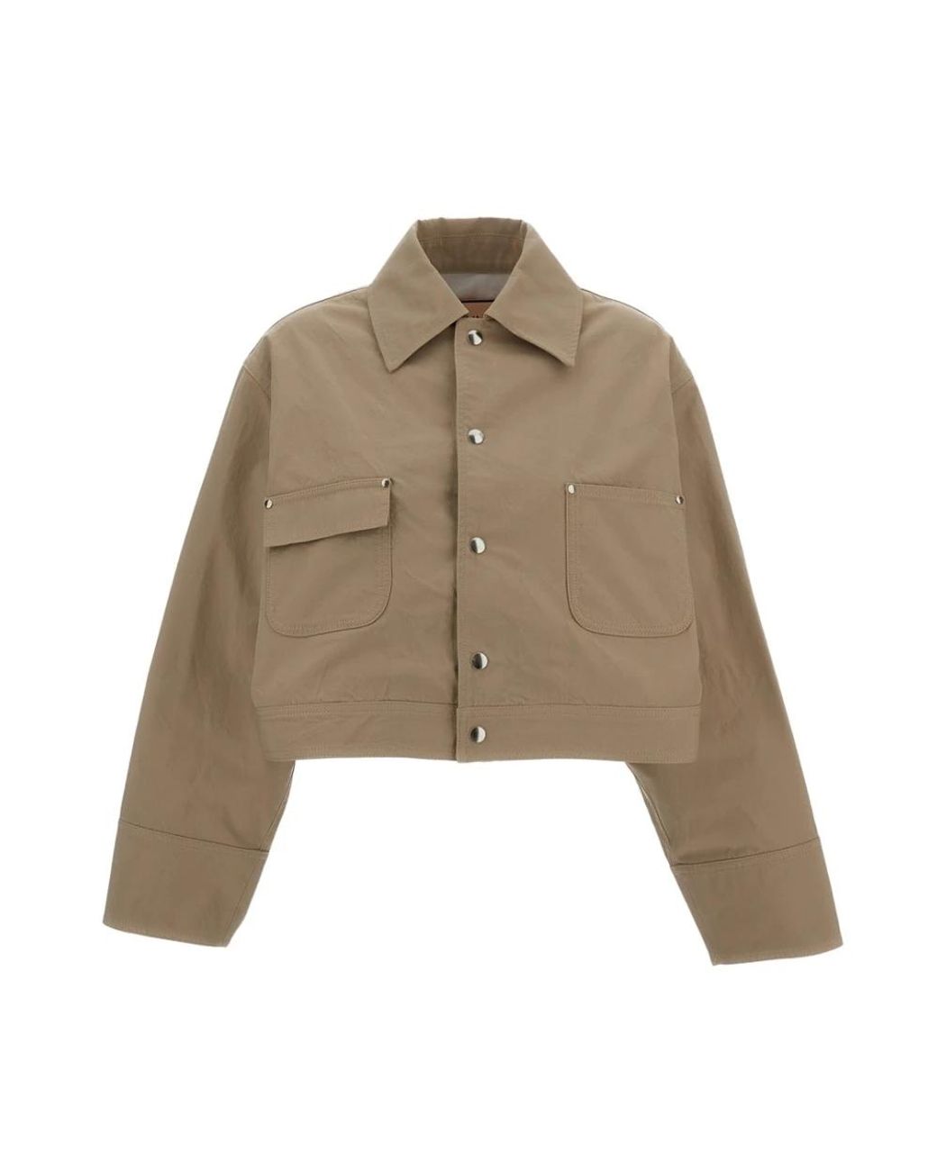 La chaqueta Boxy con Bolsillos de Plan C es una chaqueta de sarga corta con una silueta boxy y detalles de bolsillo distintivos, diseñada para looks de capas cotidianos. Atributos clave: Beige | Sarga | Cierre frontal con botones | Bolsillo con solapa | Bolsillo plano | Silueta boxy | Corte cropped | Textura de sarga | Dimensiones y ajuste: Fiel a la talla | Largo cropped