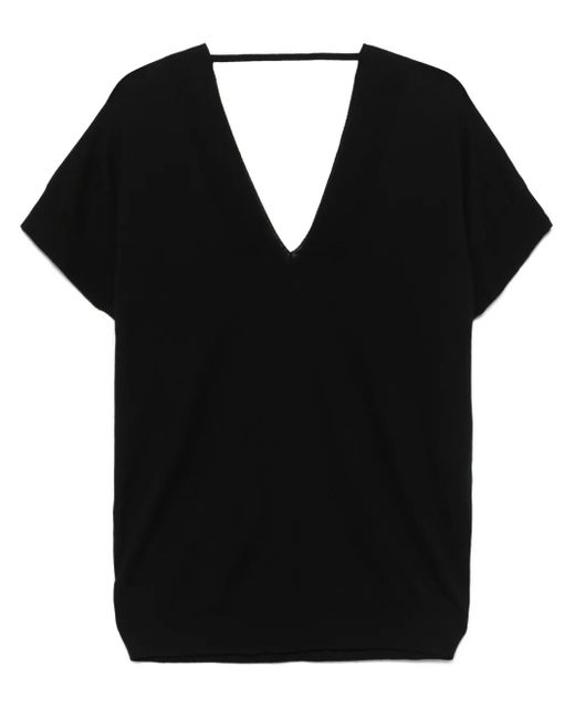 Top con cuello en V de mujer de color negro