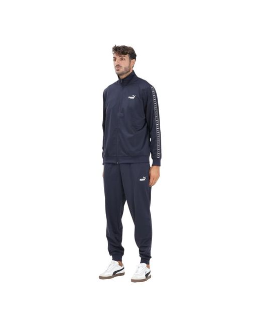 Mantente cómodo y con estilo durante tus entrenamientos con este conjunto de entrenamiento azul Puma Poly Tape para hombres. El conjunto incluye una chaqueta con cuello alto con detalles de cinta tejida y puños acanalados, junto con pantalones con cintura elástica y cordón interno para un ajuste personalizado. Ambas piezas muestran el icónico logo Puma No. 1 en impresión de goma. El modelo lleva una talla L y mide 187 cm. Recomendado para lavar a máquina y planchar a temperatura media. Perfecto para la temporada otoño-invierno. Conjunto de entrenamiento azul regular fit para hombres en 100% poliéster. Color: azul
