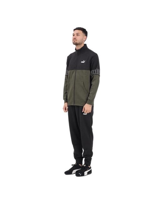El chándal Puma Essentials Colorblock combina una chaqueta con cremallera completa y paneles de bloques de color con pantalones de pierna recta para un look deportivo e informal. Destaca por sus llamativos paneles de bloques de color y la prominente marca Puma, ideal para entrenar o para el uso diario en el tiempo libre. Atributos clave: Verde | Negro | Cómodo para el ocio y el entrenamiento | Libertad de movimiento | Chaqueta con cremallera completa | Puños y dobladillo acanalados | Bolsillos delanteros en chaqueta y pantalones | Cintura elástica de talle medio | Puños elásticos en los pantalones | Paneles de bloques de color | Cuello alto | Letras grandes de Puma en las mangas | Logotipo de Puma en el pecho | Pantalones de pierna recta | Dimensiones y ajuste: Altura del modelo: 187 cm; talla L | Corte estándar | Composición y cuidado: Lavar y planchar a temperatura media. Color: negro