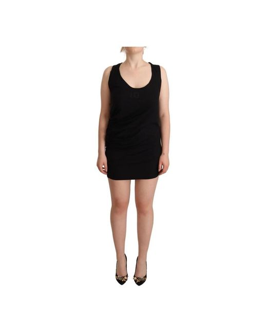 Black sleeveless cotton sheath mini dress de mujer de color negro