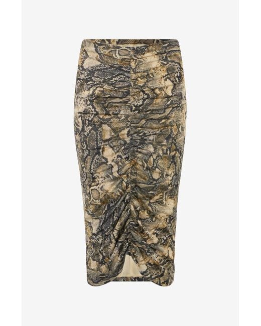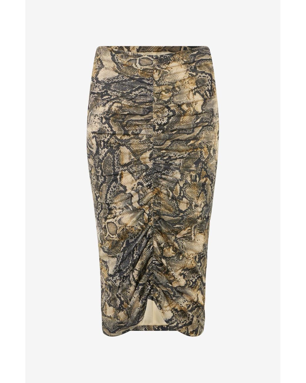 Falda con estampado Python Firmas Just Cavalli sobre la superficie de la prenda Diseño fruncido en la parte delantera Pequeña abertura en el bajo Modelo forrado Color: multicolor