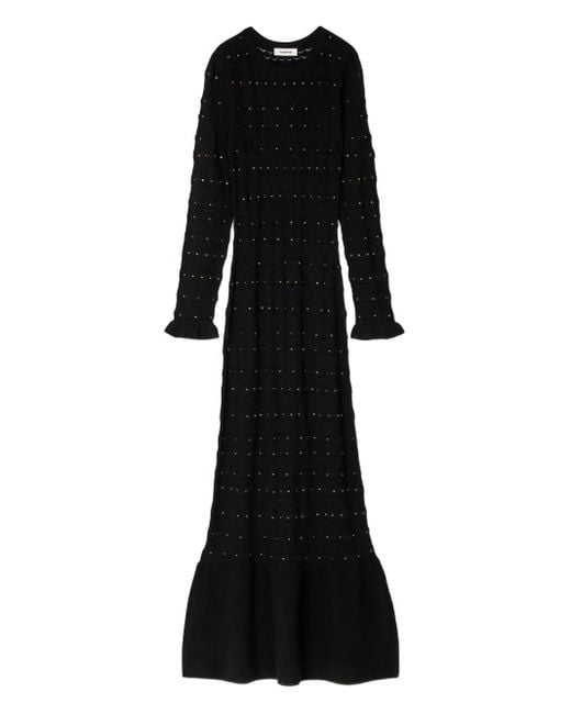 Vestido largo con apliques de strass de mujer de color negro